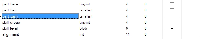 Navicat --> player.player táblában van "part_sash" oszlop?