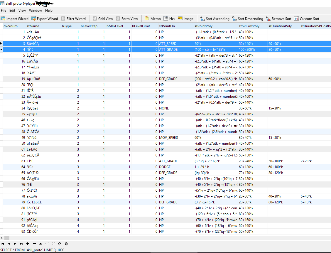Navicat --> skill_proto táblában van olyan oszlop, hogy 'szDurationPoly', oda kell írnod, hogy mennyi ideig tartson a hatása a skilleknek.